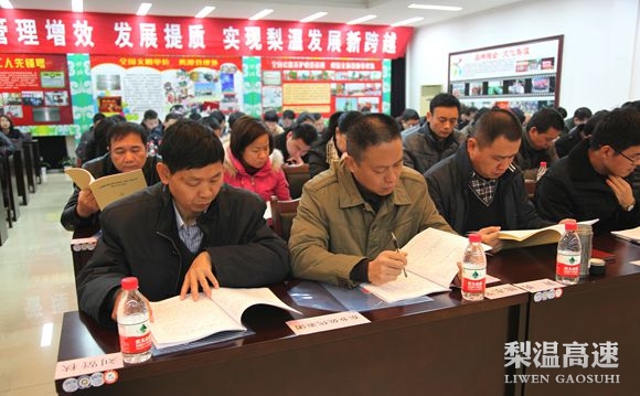 魏和仁在行政报告中回顾2013年工作:在过去的一年,梨温公司在集团和总公司的正确领导下,全体员工脚踏实地、主动作为,各项工作成绩瞩目,圆满完成了年度目标任务。突出抓了五个方面工作:一是收费主业逆势而进,窗口形象明显提升。收费保增势。服务上水平。稽核上台阶。硬件上档次。二是道路养护顺势而为,通行环境显著优化。路容路貌水平得到提高。道路畅通水平得到提高。日常监管水平得到提高。三是综合管理乘势而上,管控水平有效提高。内控管理更加细致。人事机制更加健全。综治安全更加扎实。服务基层更加优质。四是党建工作应势而行,服务能力有力增强。党的群众路线教育实践活动扎实开展。“百千万”教育实践活动扎实推进。廉政建设扎实推进。五是企业文化合势而建,和谐发展稳步推进。文体活动精彩纷呈。思想教育深入人心。创建工作丰富多彩。魏和仁指出,在前段时间的冰雪天气中,公司各级领导身先士卒,靠前指挥,驻守一线,各单位严格按照部署,想方设法维护保畅大局;广大员工任劳任怨、坚守岗位、日夜奋战,高效完成了抗冰保畅任务,这是大家“司荣我荣”境界的充分展现,也是队伍作风优化的有力证明。