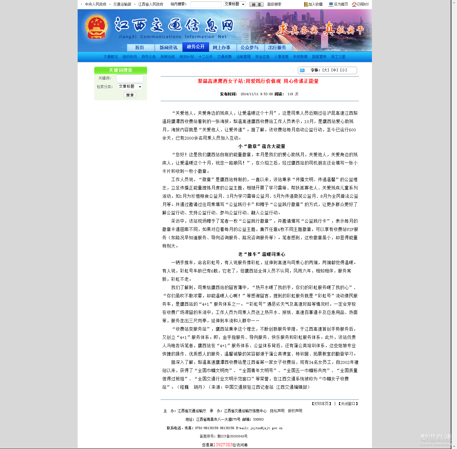 【媒体聚焦】梨温高速鹰西女子站:用爱践行价值观 用心传递正能量