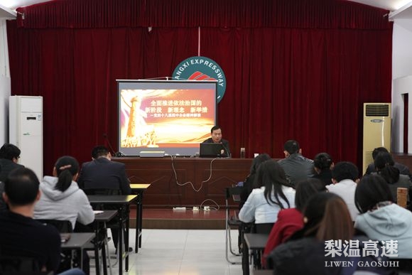 为深入学习贯彻十八届四中全会精神,11月26日下午,梨温公司鹰潭管理处举办学习党的十八届四中全会精神专题辅导讲座,邀请到鹰潭市宣传部副部长、市委讲师团团长张敏胜以“全面推进依法治国的新阶段、新理念、新举措”为主题作专题辅导。处班子成员、党员、干部、入党积极分子及部分员工近50人参加学习。
