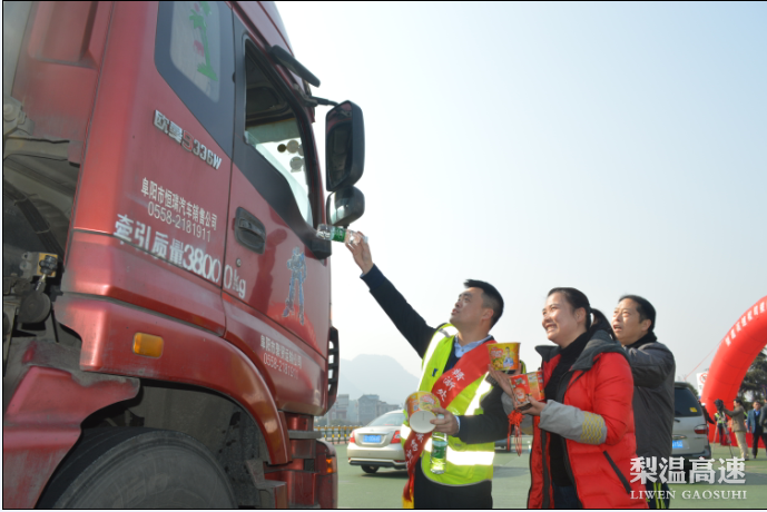 “师傅,一路辛苦了,欢迎您回家乡过年,祝您一路平安!”一声声问候回荡在省界梨园收费站。