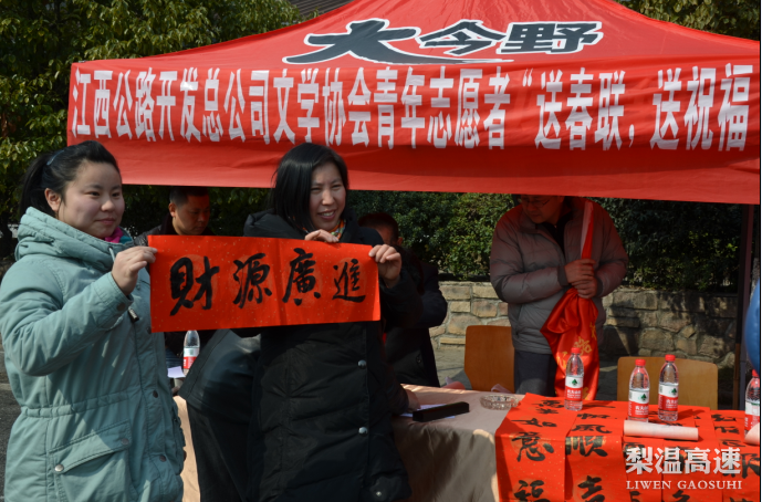 红红的春联,暖暖的祝福。2月11日上午,梨温高速玉山管理处组织员工走进三清山服务区为过往的司乘人员写春联、送祝福,让他们在返乡途中能感受到春节的年味和温馨的服务。
