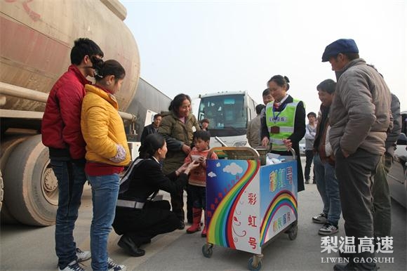 为强化春运服务保障,该公司推出一系列特色服务措施,把春运“满意窗口”打造成“暖心窗口”。在各收费站公布收费站春运服务问询电话,向司乘人员发放宣传单提示天气路况等。有的收费站还馈赠小礼品如挂饰、卡片、暖手宝等以示祝福。该公司各收费站还提前充实便民服务箱物件,设置针线、全国地图、创口贴、晕车贴、老花镜、雨伞等工具,为司乘提供急需帮助服务。