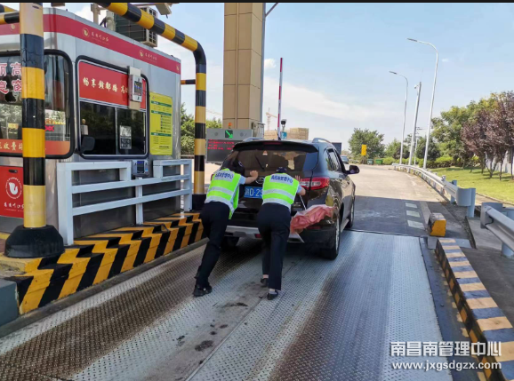 近日,南昌南管理中心桥东收费站收费员们不惧炎炎烈日,帮助司乘人员将故障车辆推离车道并联系修理厂,助力司乘人员解困,获得车主连声道谢。