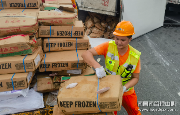 鹰潭中队负责人刘长乐接到电话后,立即组织车辆设备和人员赶赴现场。11点30分,抵达后,刘长乐立即做好后方安全围蔽,由于该车占用了超车道和行车道,并安排一人在后方指挥车辆缓慢从应急车道通行,缓解通行压力。与此同时,救援人员徒手将散落一地的货物一箱箱搬运到转货车上,路面温度高达近40℃,尽管浑身汗流浃背,大家依然不懈奋战,在近两个小时的努力,600箱鸡翅全部被转运下高速,并及时到达鹰潭东收费站出口广场,此时,林师傅已经联系好的冷藏车也恰巧抵达,货物无缝衔接被安全转移至冷藏车厢中,为林师傅尽最大的可能挽回了损失。